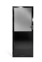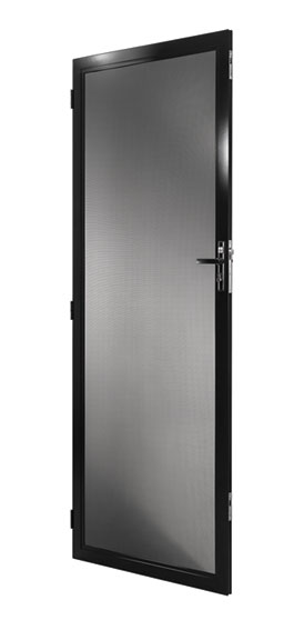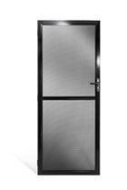 The solid panel can be any height you like. It can also be any colour you like – matched to the frame or black like the ForceField® mesh. Strength is not compromised in a solid panel door, the panel is made of 1.2 mm solid aluminium.